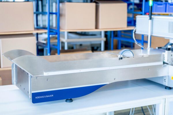 Produkty umiestnené vo vstupnom zásobníku sú pri odoberaní kontrolované senzorom a sú automaticky pozíciované. To zaručuje presné označenie voliteľným potlačovacím systémom. Technológia vyvinutá spoločnosťou Koenig & Bauer umožňuje dopĺňanie produktov počas prevádzky.